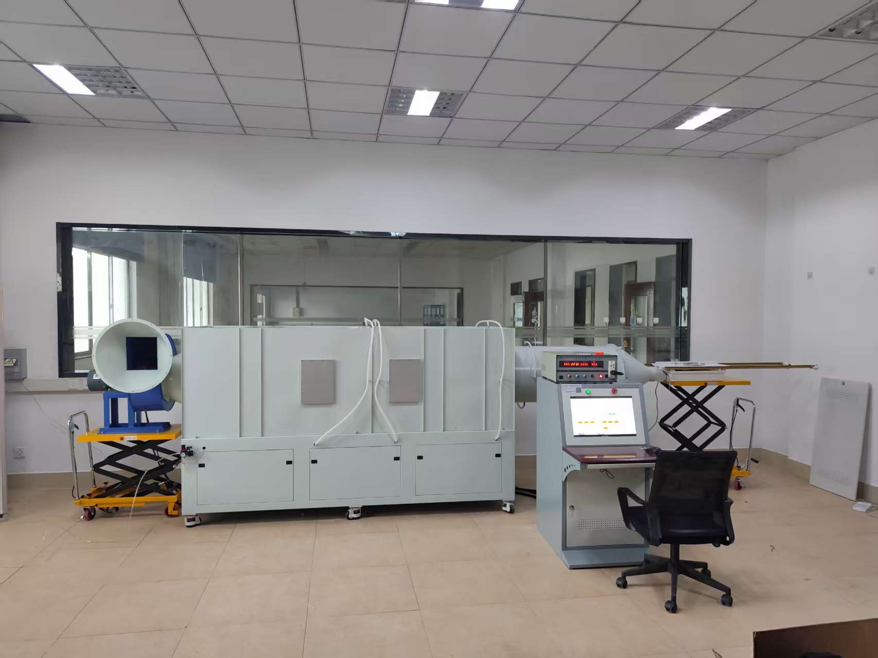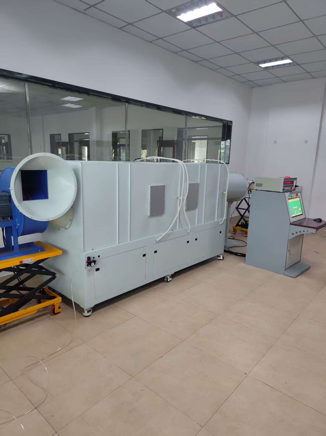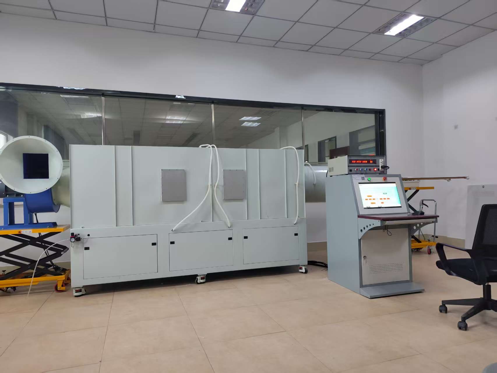 风机风量测试台用 于 风 机 性 能 测 试 , 满 足 标 准 ANSI/AMCA210-16 、GB/T1236-2017(等效 ISO5801-2007)的要求。风机风量测试台(又称风机性能测试台、风量风洞)是用于精确测量风机 / 风扇风量、风压、功率、效率等性能参数的专业测试系统,核心是按标准测出 PQ 性能曲线(风量 - 静压),用于研发、质检、认证与选型。适用于:离心风机、轴流风机、贯流风机、空调风机、FFU、新风 / 排风设备等