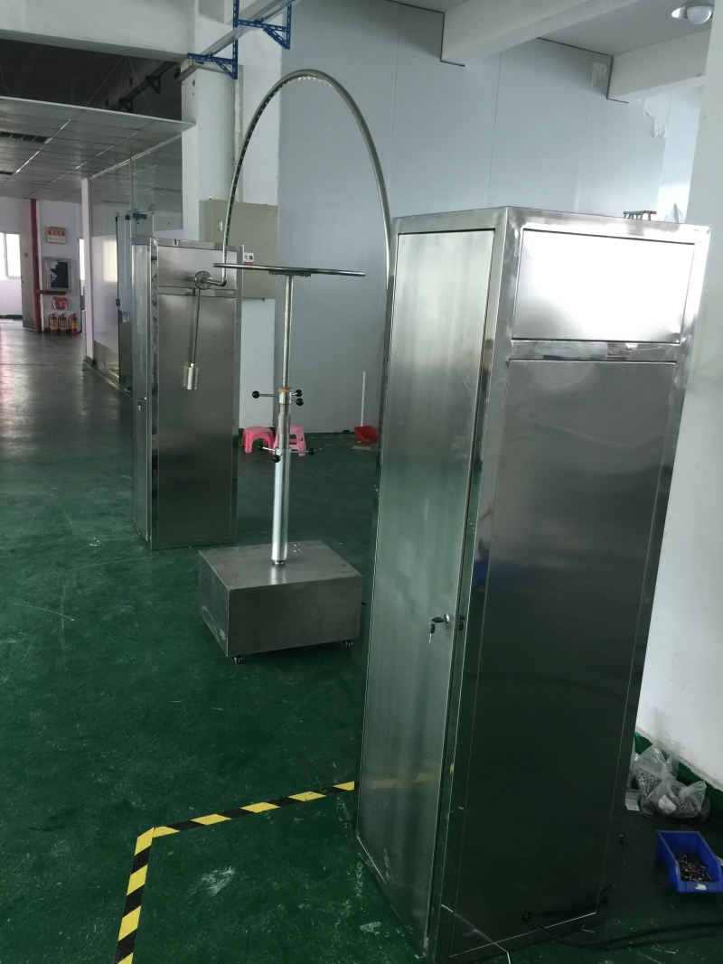 IPX34摆管淋雨试验装置依据GB4706、GB4208第13.2.3(图4)、GB2423等相关标准要求,用于检测具有防淋雨功能的器具的防护性能,角度的摆动采用定角度档位可调(如60、90、180度)的步进电机驱动控制方式。