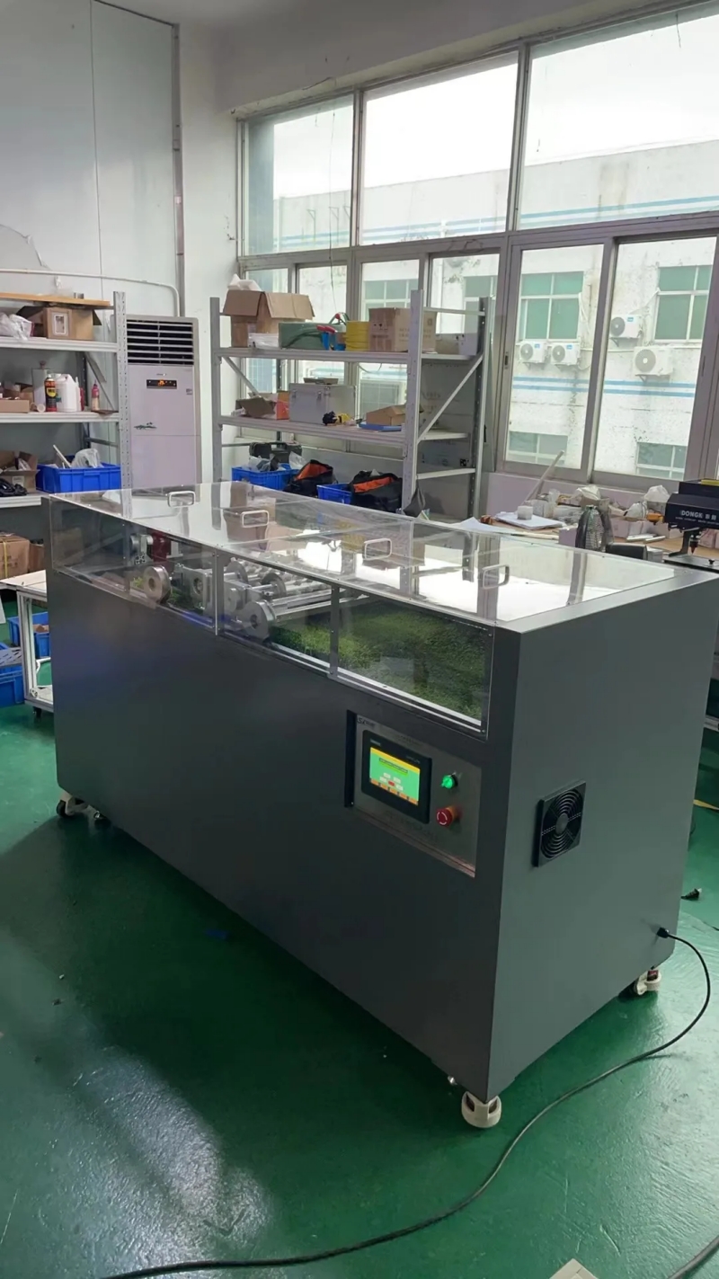 3.1、特别设计的自带鞋钉柱状磨损辊筒在测试过程中容易调整,调节器可控制辊筒向左或向右,以配合有关测试的人造草皮。测试完成后,可升高滚轮,方便更换样品。