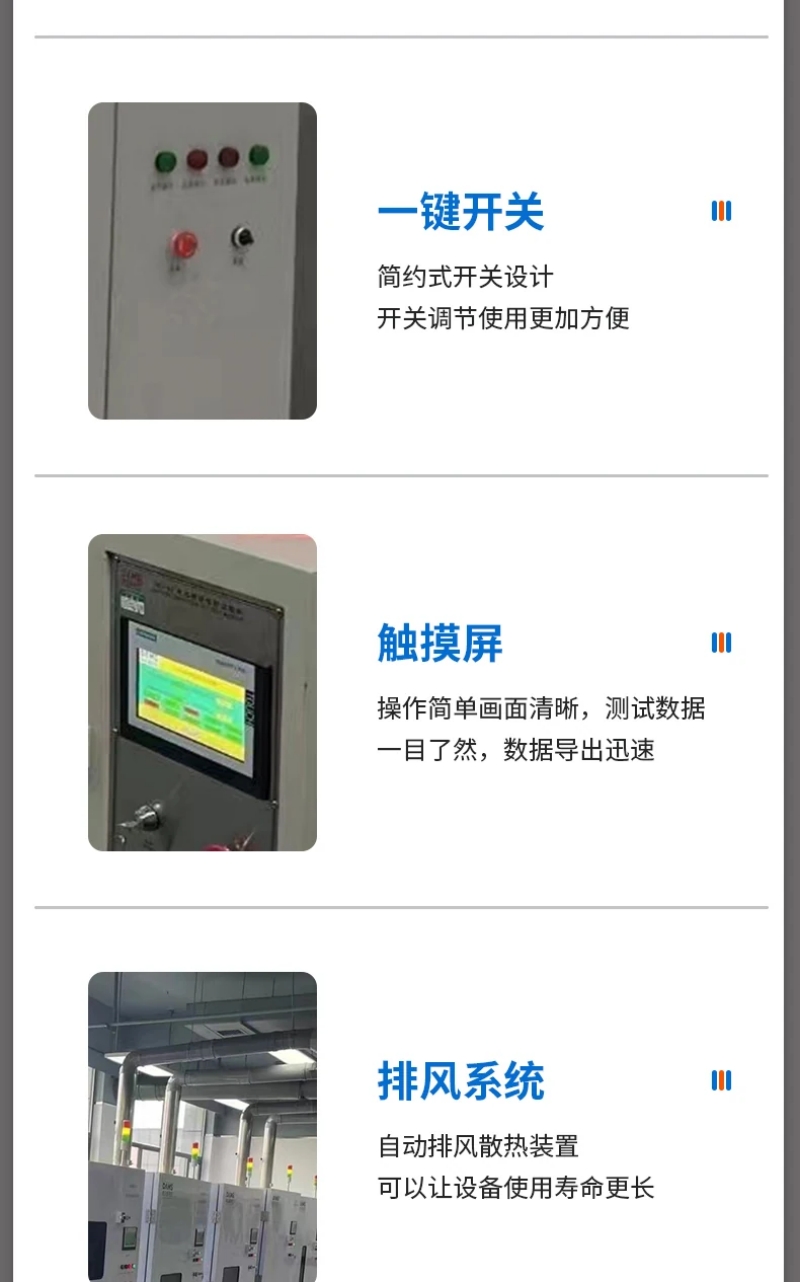 锂离子电池短路试验机适用于锂原电池和其它原电池、以及锂离子电池(用于笔记本电脑、摄像机等数码电子产品)、镍氢、镍镉以及铅酸电池(用于电动工具、玩具、电动自行车等产品),按照标准GB8897.4-2002、GB/T18287-2013、IEC60086-4:2000、IEC62133:2002、UL1642:2006、SN/T1413-2004、SN/T1414.3-2004中的机有关要求,进行外部短路试验。