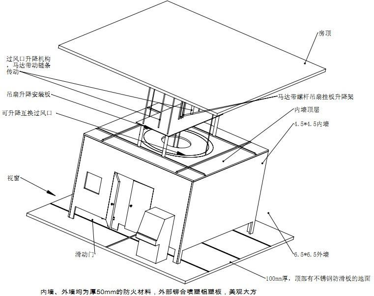 试验屏之外的顶板或任何会干扰气流的凸梁都应该在顶孔之上不小于1000mm的地方,即外屏