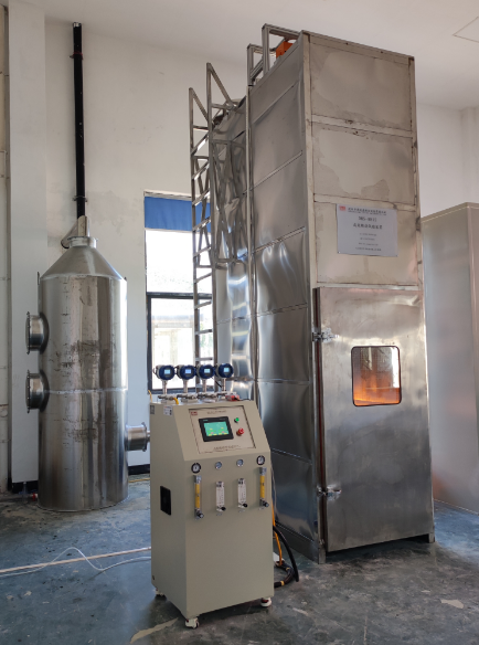应在试验箱顶部的后面开一个(300士30)mmX(1000士100)mm的出气口。试验箱的后墙和两侧墙应采用传热系数约为0.7W·m-2 ·K-1的热绝缘。例如,在(1.5~2.0)mm厚的钢板上包覆65mm厚的矿物纤维再外包一适当的外套即可(见图2)。钢梯与试验箱后墙之间的距离为(150士10)mm,钢梯最下面的横档距地面(400±5)mm。电缆试样的zui低处距地面约100mm(见图3)。
