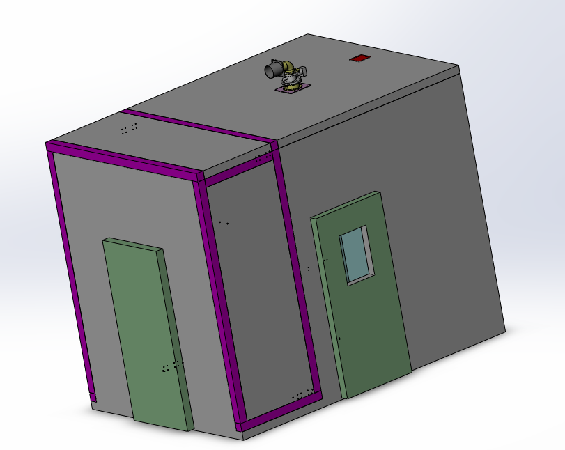 环境试验舱整体构造主要由舱体、空气净化器与温湿度控制系统、排气风道、循环风道、空气采样系统、污染源发生装置组成,基本结构如下图: