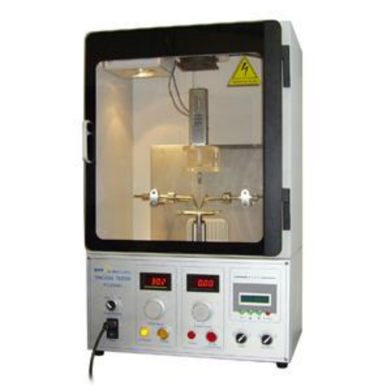 电工和电子电器设备中使用的各种固体绝缘材料在电场及其它污染介质(灰尘、水等)联合(电离)作用下,其表面可能发生漏电或局部放电而逐渐形成导电通道,诱发腐蚀而损坏其绝缘性能,严重时会造成电气短路事故并引发火灾,危及设备正常使用和人身anquan. 漏电起痕试验是在固体绝缘材料表面上,在规定尺寸(2mm×5mm)的铂电极之间,施加某一电压并以一定的时间间隔(30s)及高度(35mm)滴下规定液滴体积的污染液体(0.1%NH4CL),用以评价固体绝缘材料表面在电场和污染介质联合作用下的耐受能力,测定其相比漏电起痕指数(CT1)和耐漏电起痕化指数(PT1)的模拟试验. 适用于各类照明设备、低压电器、家用电器、机床电器、电机、电动工具、电子仪器、电工仪表、信息技术设备的研究、生产和质检部门,也适用于绝缘材料、工程塑料、电气连接件以及其它辅件行业等