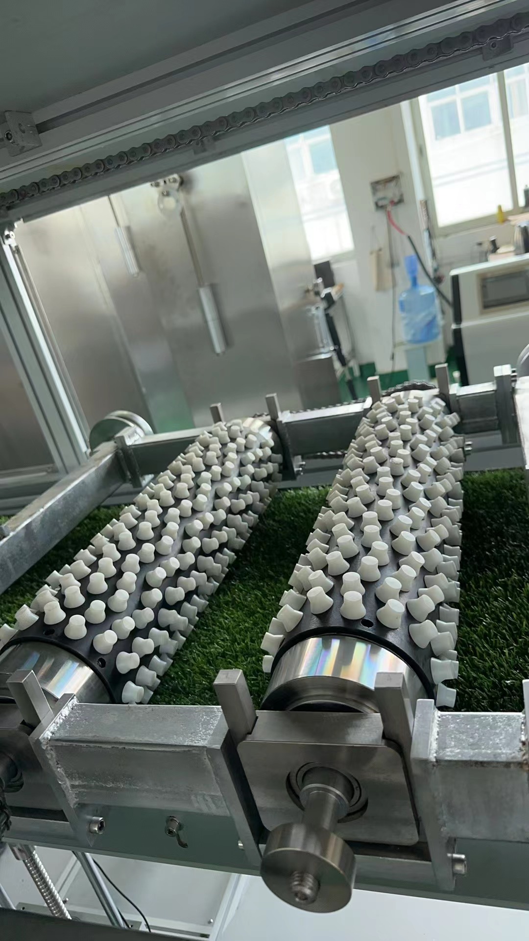 通过Lisport测试设备上的钉辊在人造草坪样品上来回碾压,模拟正常使用时,运动员穿着带钉运动鞋在草坪上运动,达到一定的时间周期后,检验、评价草坪的磨损情况。耐磨性能良好的人造草坪更耐用,使用寿命更长久。本试验机结合国外先进同类设备优点并自主创新,采用横纵两维方向上的两个独立运动系统更合理地模拟人造草坪实际使用时的磨损情况,并且结构紧凑,噪音小,操作简单,便捷美观。
